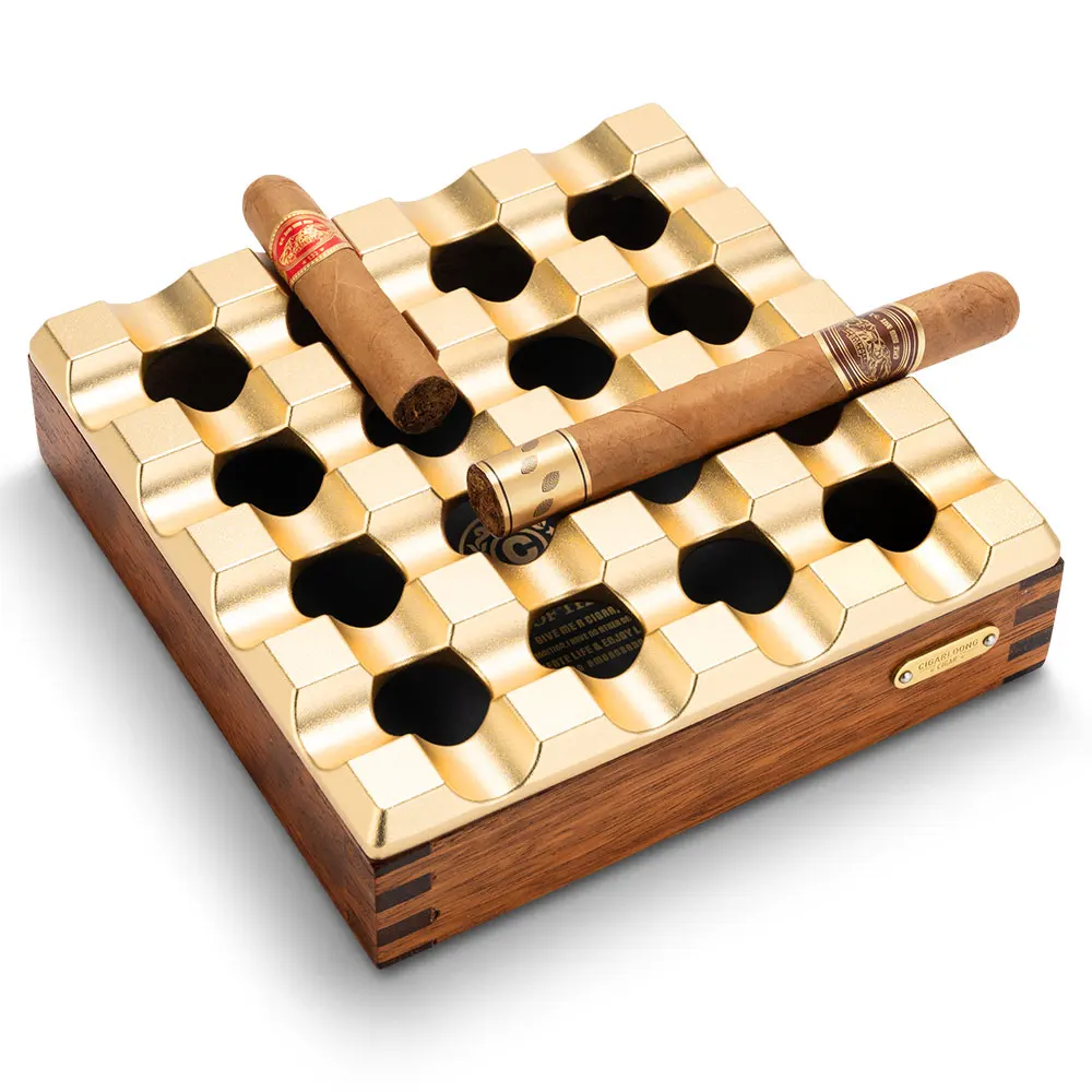 Cenicero de aluminio de madera maciza para cigarros, gran diámetro, ranuras múltiples, extintor de humo, diseño único CL-2020