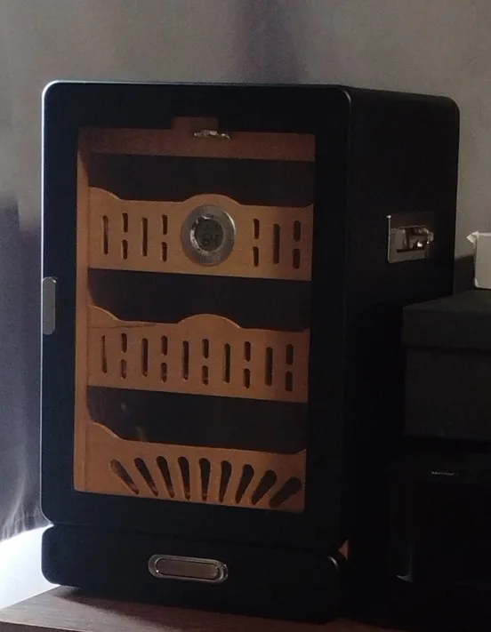Unlike desktop humidors with limited capacity, a cabinet humidor provides superior airflow, organisation, and long-term stability. Separate drawers reduce cigar compression, while the cedar-lined interior ensures consistent aging across your entire collection. The glass panels allow elegant display without compromising internal conditions—ideal for collectors who value both preservation and presentation.